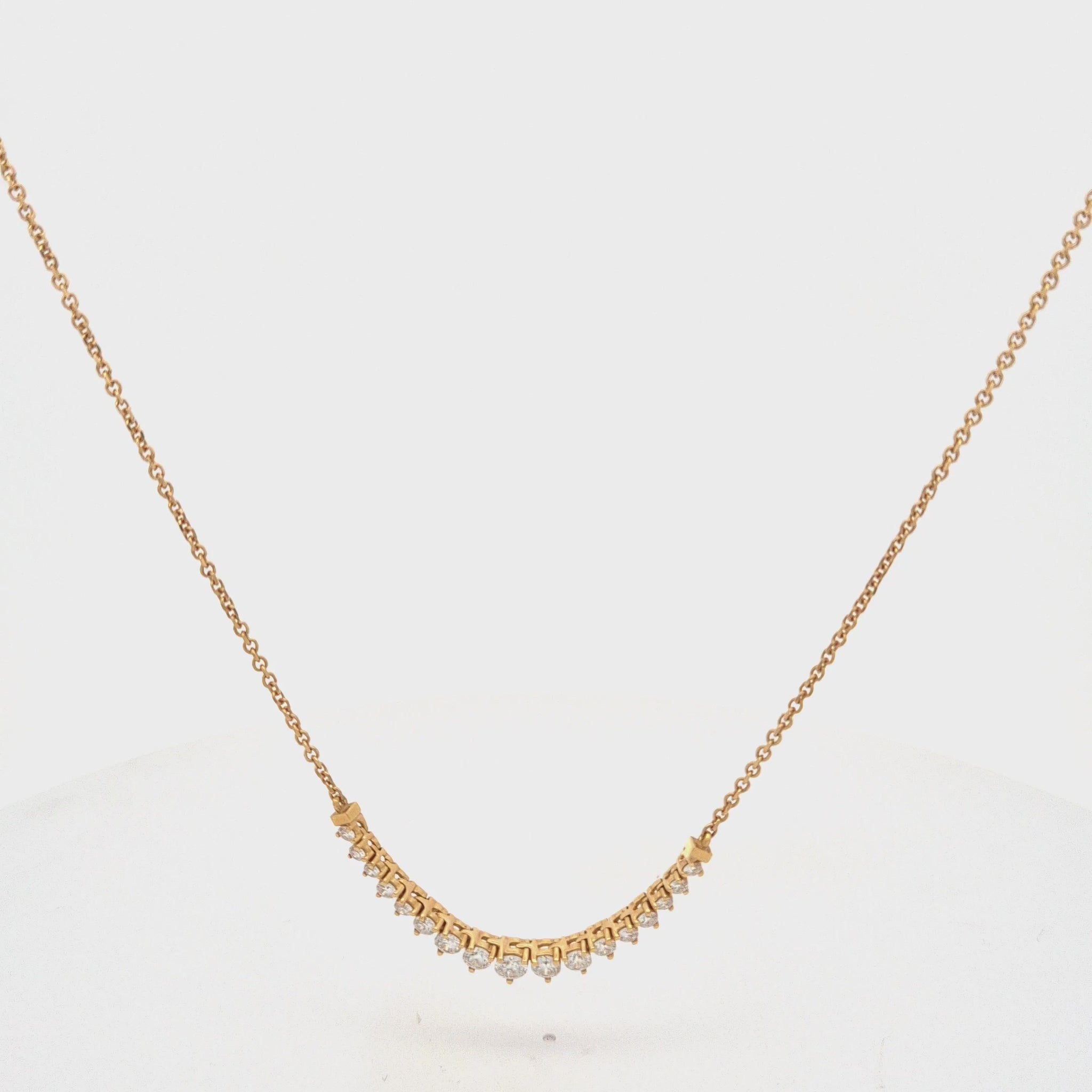 Ontdek dit schitterende 18k geel gouden delicate collier met schitterende witte diamanten aan de voorzijde. Het collier is 44 cm lang en bevat 17 briljant geslepen diamanten van in totaal 1,10ct. De diamanten verlopen van klein naar groter en geven een prachtige schittering om de hals.