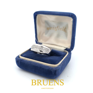 De ring is mooi zwaar, 12,40 gram en bevat 42 schitterende witte diamanten van een prachtige kwaliteit.