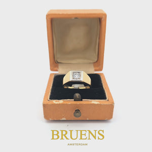 Ontdek de tijdloze elegantie van deze prachtige gouden herenring. De ring is mooi strak vormgegeven waarbij een prachtige 0,5ct diamant is gezet in witgoud. Het geheel wordt gevormd middels een 14k geel gouden band. Hierdoor is het een perfect accessoire is voor elke gelegenheid. Ideaal om cadeau te doen of als persoonlijke herinnering, deze ring belichaamt verfijning en stijl.