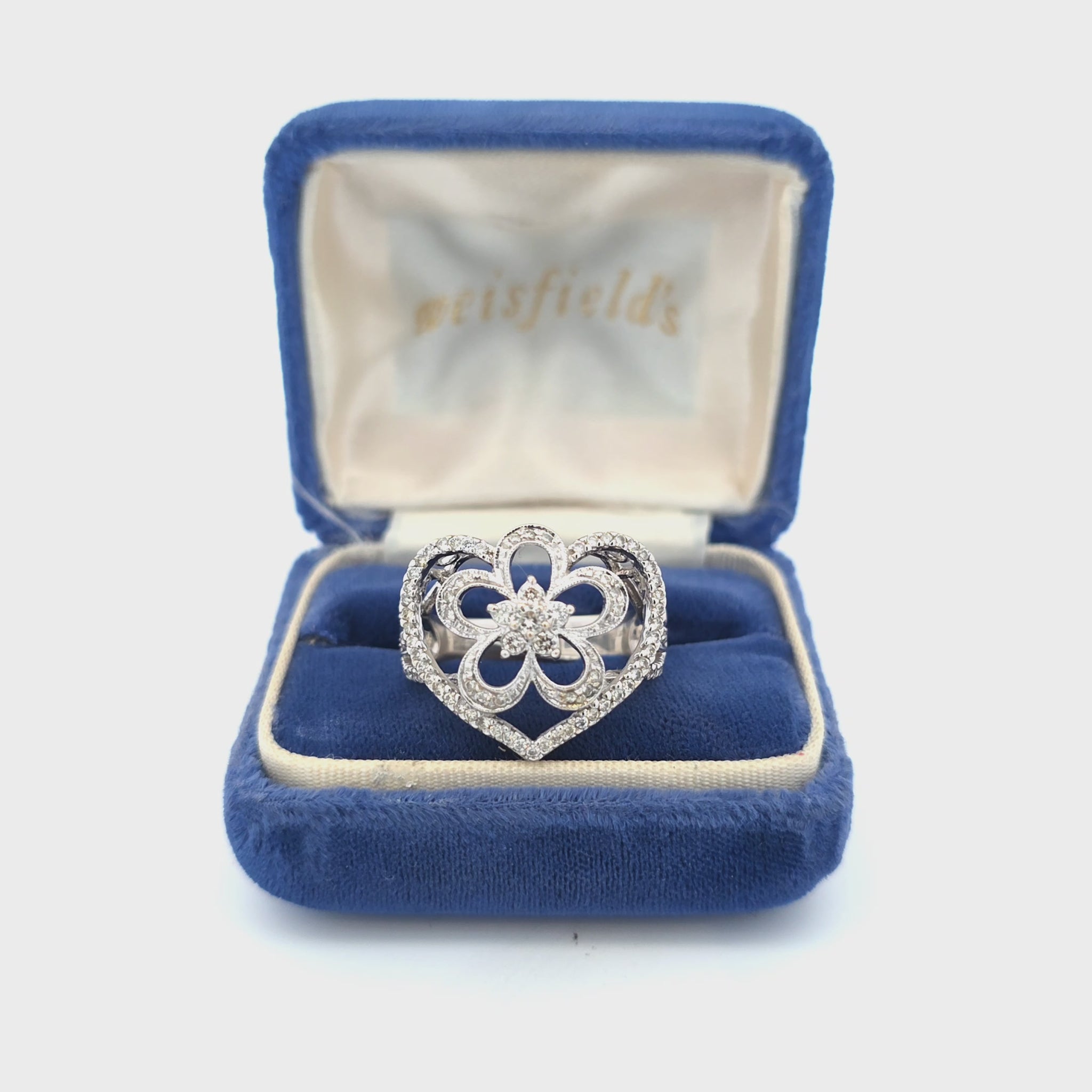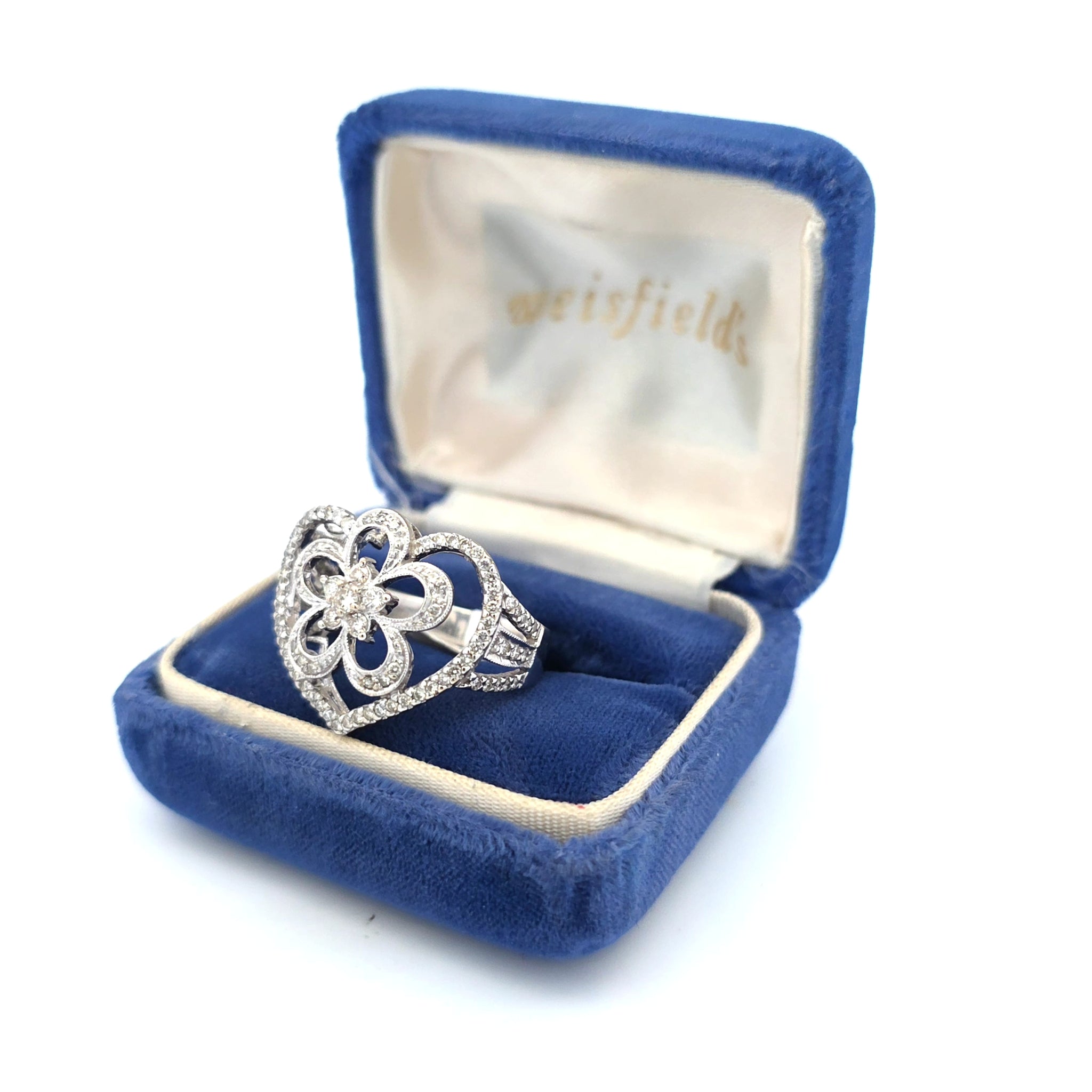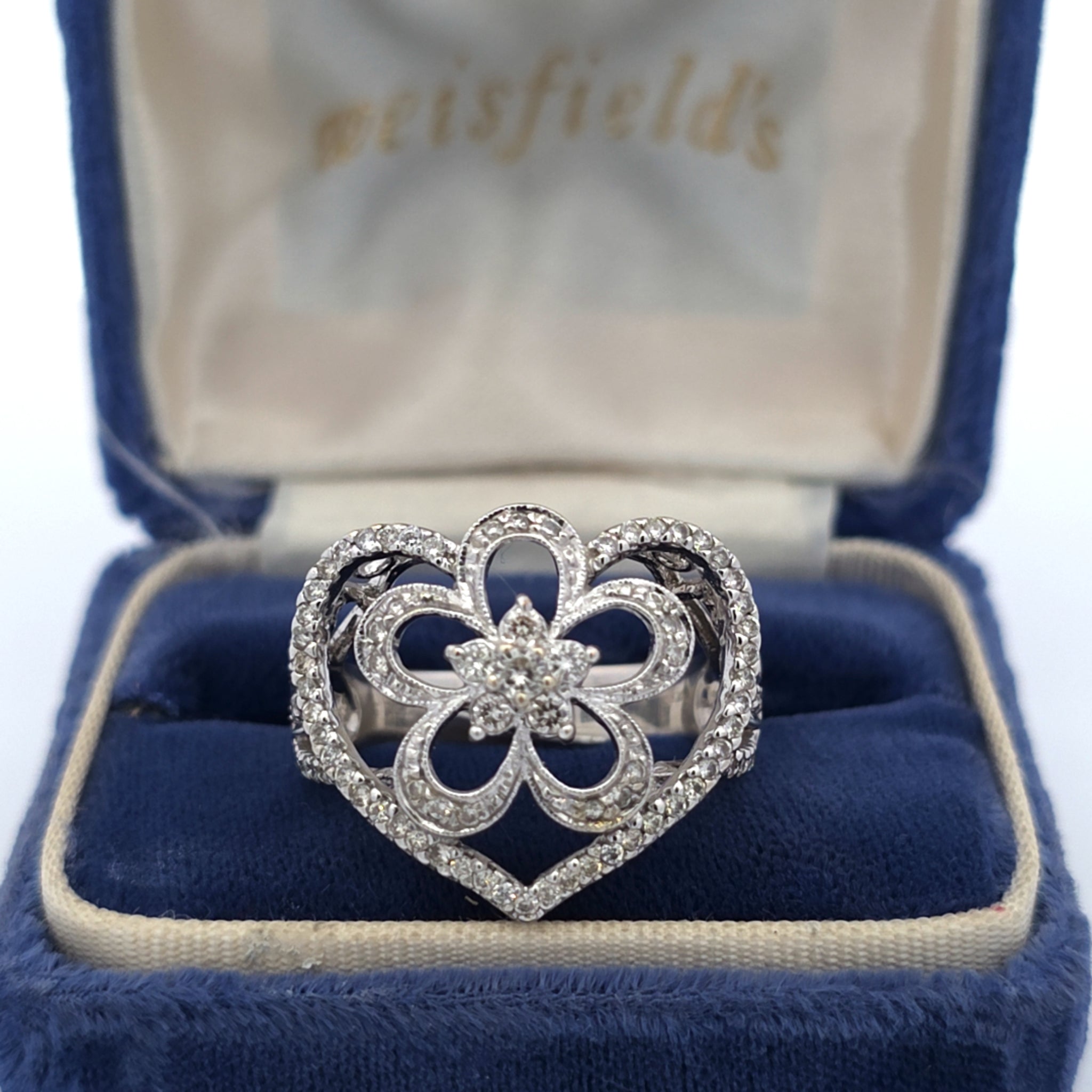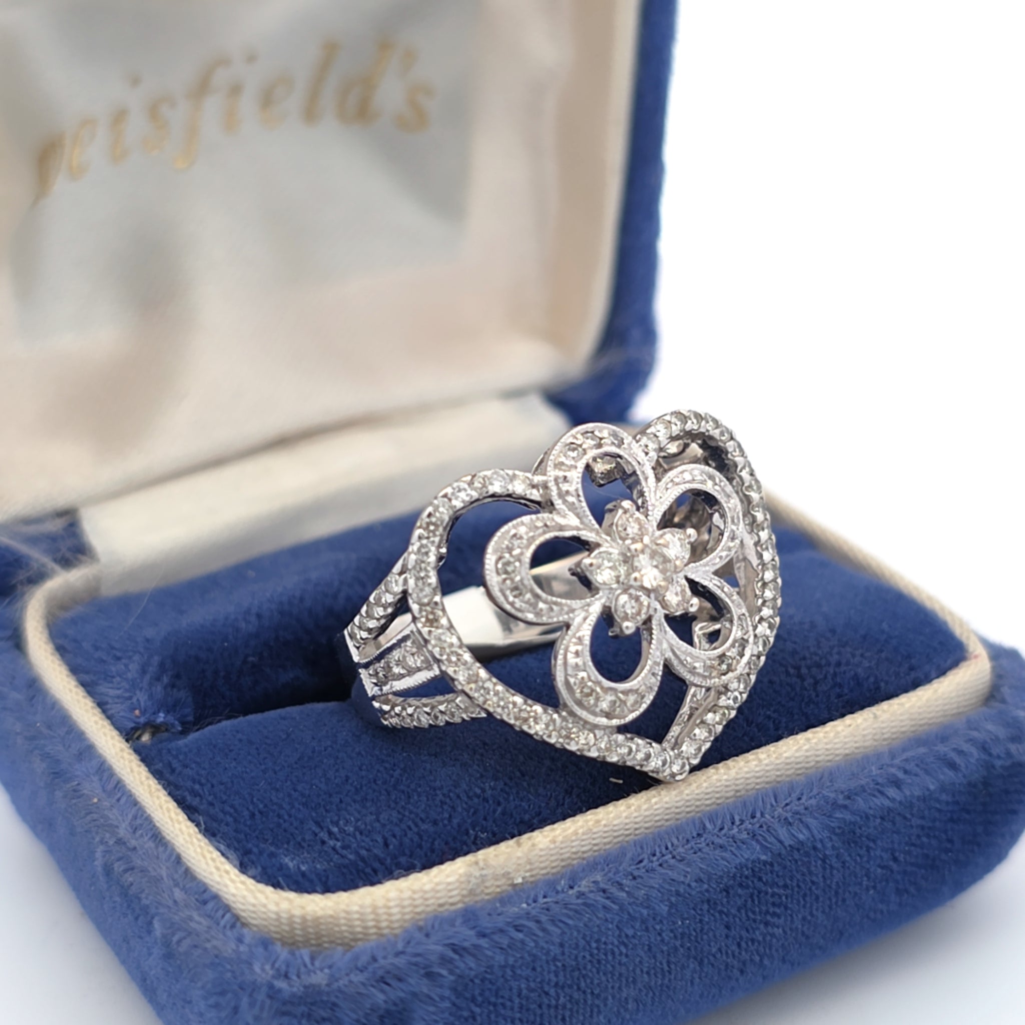 Ontdek de schoonheid van deze prachtige hartvormige diamanten ring, van een indrukwekkend formaat! Het verfijnde motief, versierd met sprankelende diamanten, maakt het een perfect cadeau voor een geliefde of een prachtige aanvulling op uw eigen sieradencollectie.